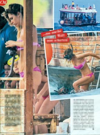 Pizzicato da Chi sull'atollo di Lhaviyani, Totti se la spassa con parenti e amici senza perdere di vista la sua amata mogliettina che, con tanto di boccaglio e maschera, si prepara ad immergersi nelle acque cristalline.