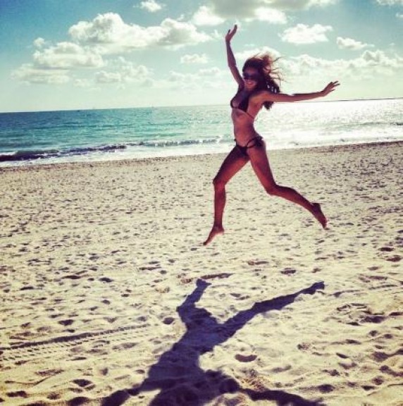 In costume, al caldo davanti al mare. Cosa potrebbe desiderare di più una bellissima Magda Gomes salterina?