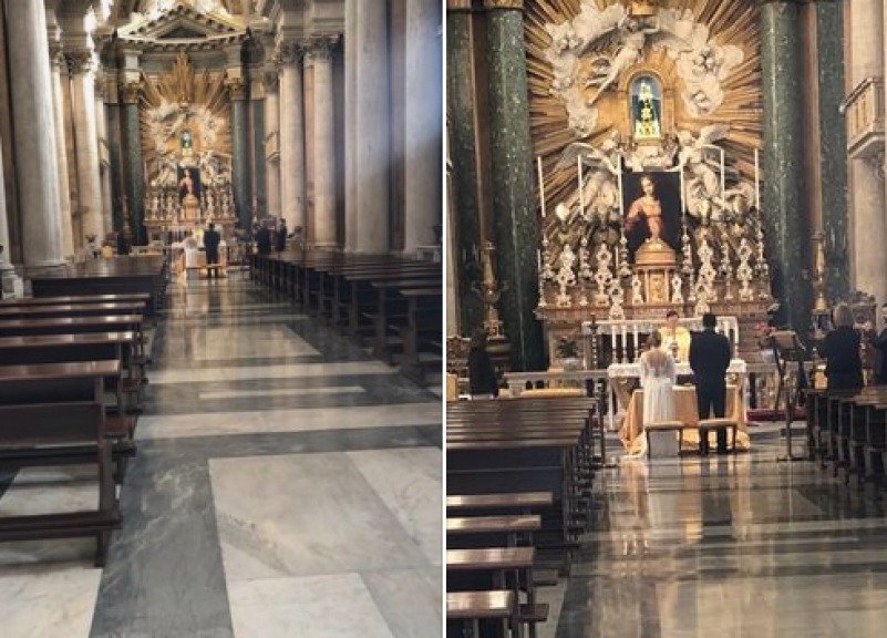 In una suggestiva cornice nel cuore di Roma, precisamente a San Salvatore in Lauro, a due passi da via dei Coronari, si è svolto un matrimonio insolito e senza precedenti. Gli sposi hanno scelto di dirsi "sì" senza la presenza di alcun invitato. Nessun amico, nessun parente, solo i due innamorati all'altare, circondati dall'atmosfera silenziosa della chiesa.
